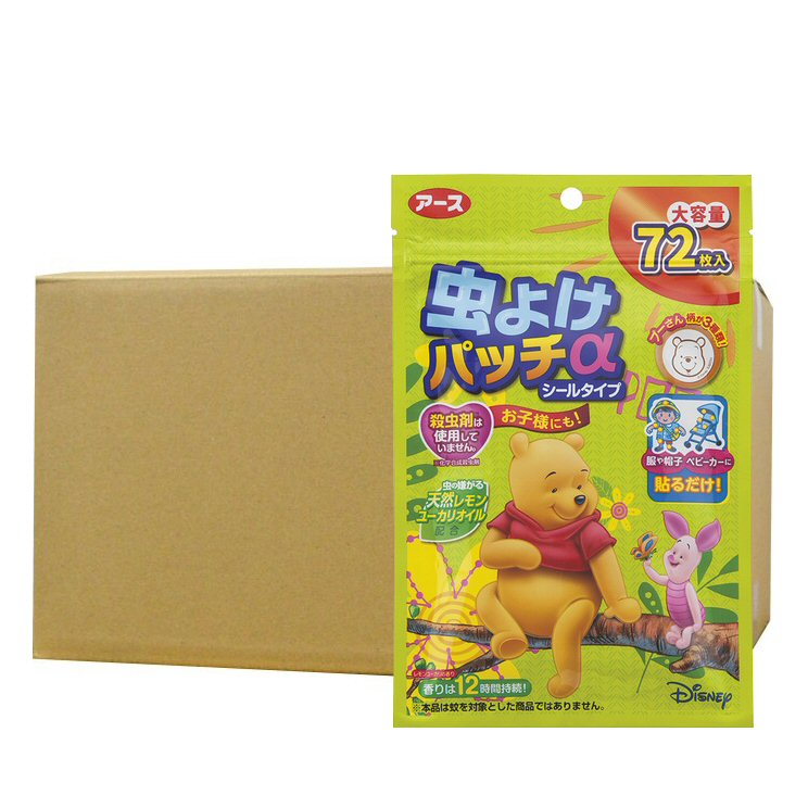 防虫剤 虫よけパッチα シールタイプ プーさん レモンユーカリの香り 72枚入り×96個 天然成分 虫忌避剤【北海道・沖縄・離島配送不可】