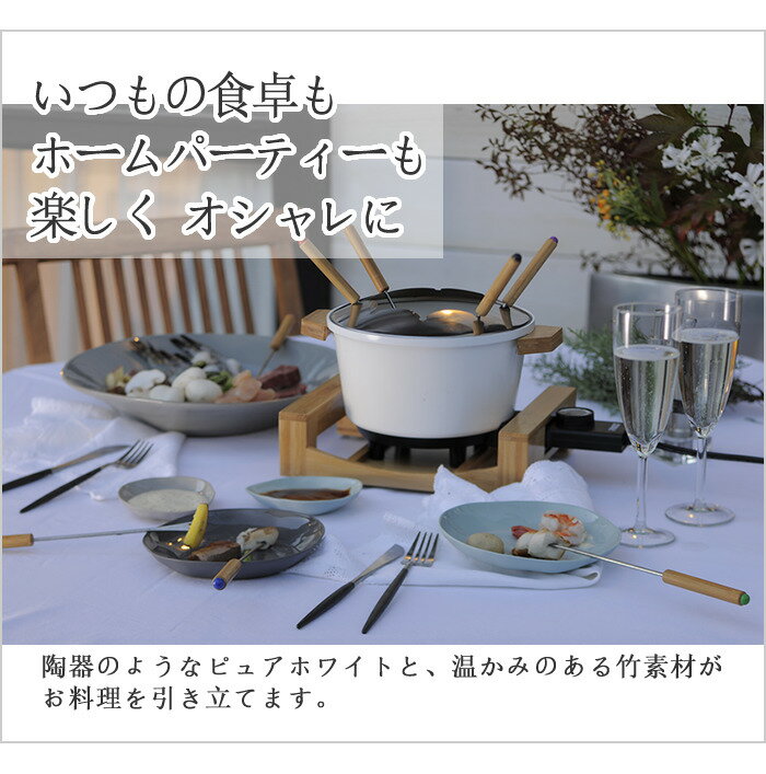 チーズフォンデュや串揚げをするときに、オシャレな盛り付け皿としても活躍します。